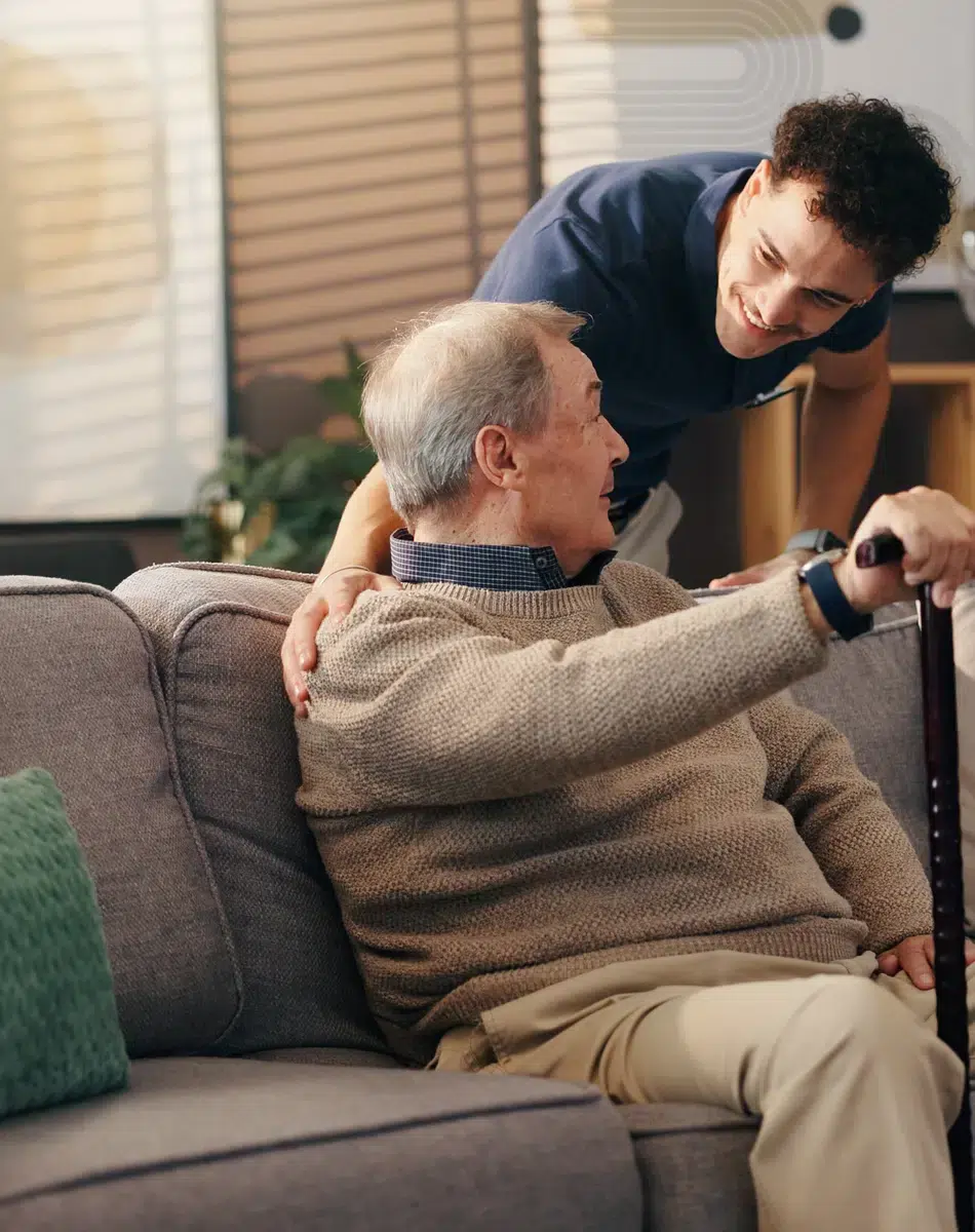 Logo de L\'Alpha Oméga avec deux personnes et symboles de paix